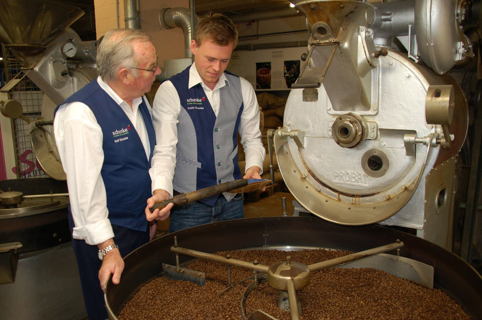 Schon mein Großvater, Rolf Schenke, erlernte das Handwerk des Röstmeisters von seinem Vater Hubert Schenke in den Fünfzigerjahren. Viele Jahre wehte damals jeden Dienstag ein Duft nach frisch gerösteten Kaffeebohnen durch den Lebensmittelmarkt, in dessen Parterre sich die Kaffeerösterei und das Zolllager befanden.