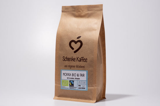 100 % Mokka aus biologischem und fairtradezertifiziertem Anbau in kleinen Waldgärten. Komplexer Körper mit würzigen und floralen Aromen und einer leichten Zitrusnote.