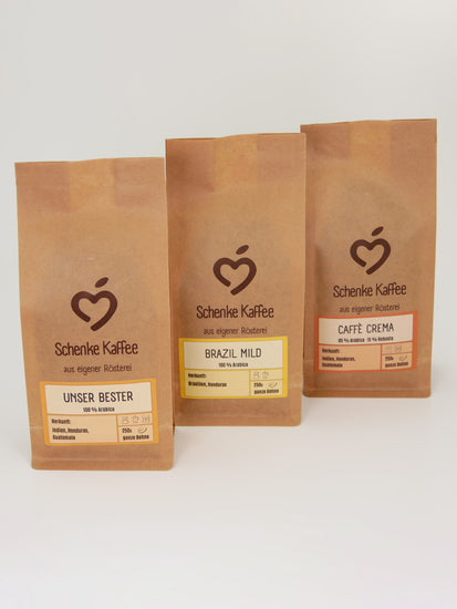 Probiere unsere bewährten Favoriten mit Unser Bester, Brazil Mild und Caffè Crema – perfekt für klassische Kaffeegenüsse.
